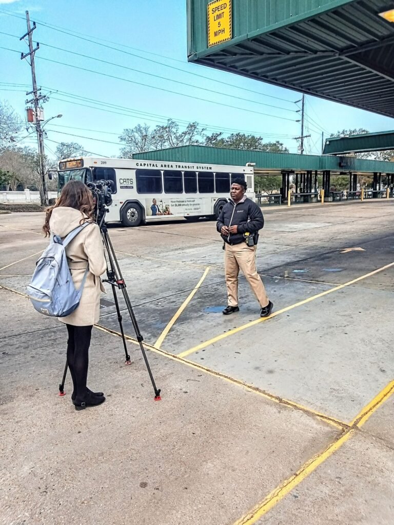 Interview with WAFB 9 news where C.A.T.S. Bus system allowed me to educate their drivers on what to look for in Human Trafficking